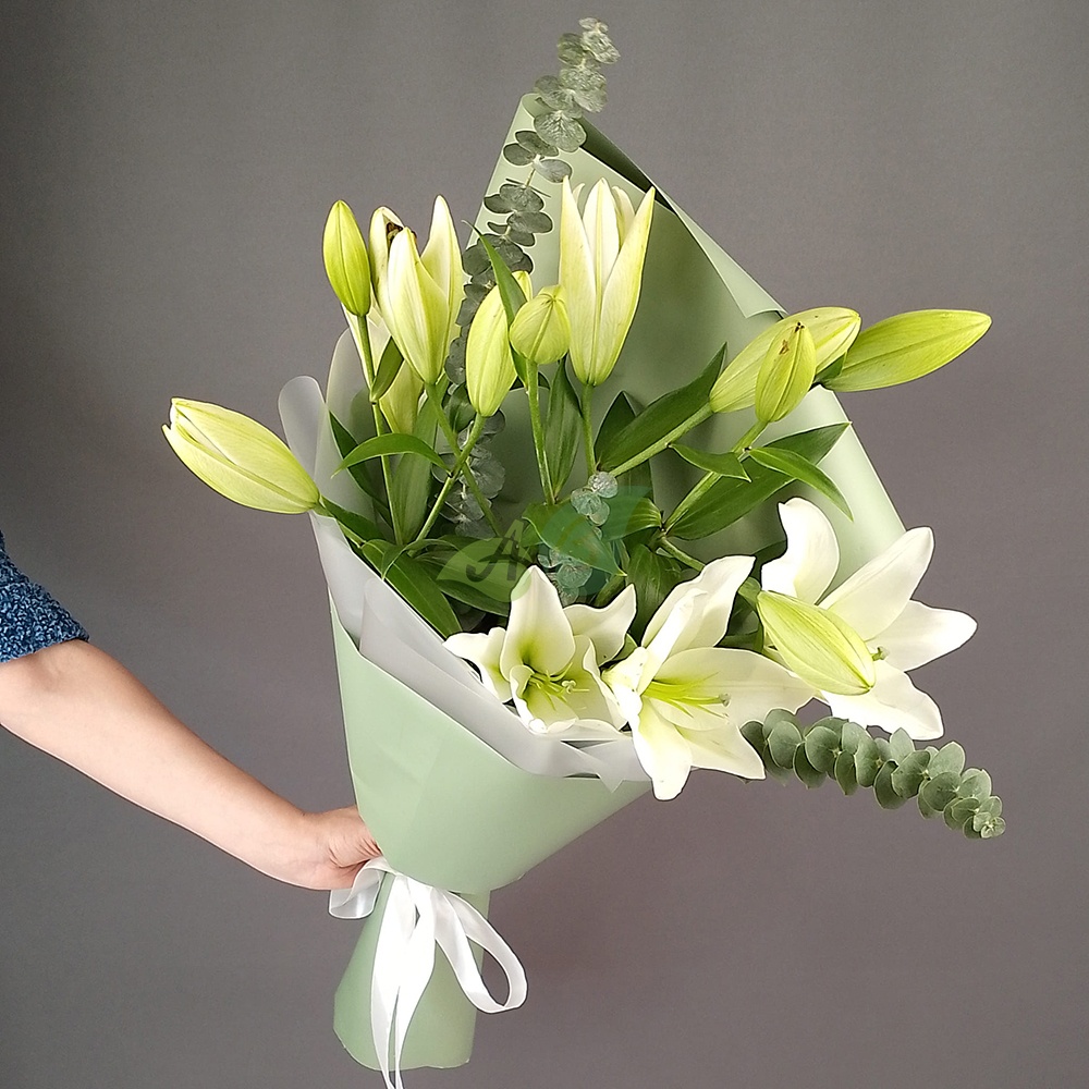 - Лилия - 3 штуки, цвет - белый;